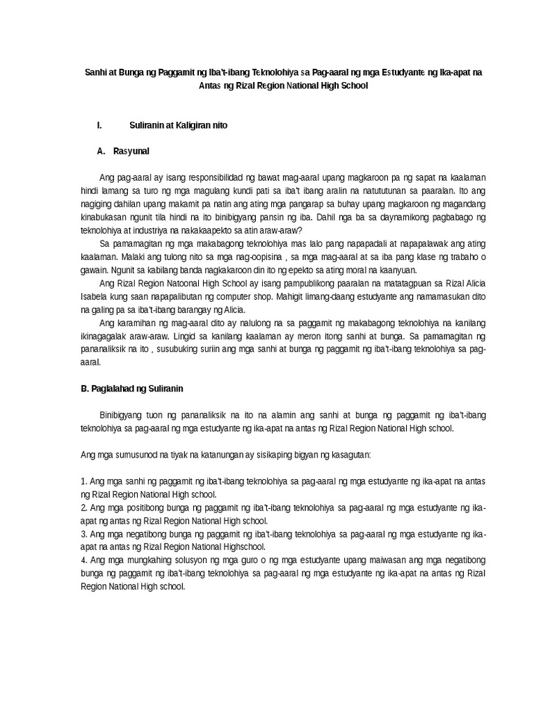Ang Sanhi at Epikto ng Makabagong Teknolohiya sa mga Kabataan _____ Isang Pananaliksik na Inaharap sa Guro ng Misamis Oriental Institute o Science and Technology Balingasag Misamis Oriental _____ Sa Parsyal na Pagsasakatuparan ng mga Pangangailangan sa Asignaturang Filipino 121 Pagbasa Pagsulat sa Ibat-Ibang Disiplina Tungo sa Pananaliksik _____ Ipinasa Ni. Ang sanhi ng teknolohiya ay maaring makadulot ng. 10 3195 words Published.