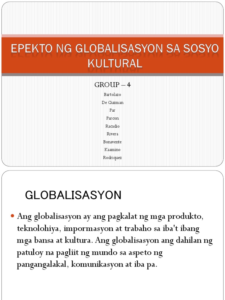 Epekto Ng Globalisasyon Sa Sosyo Kultural